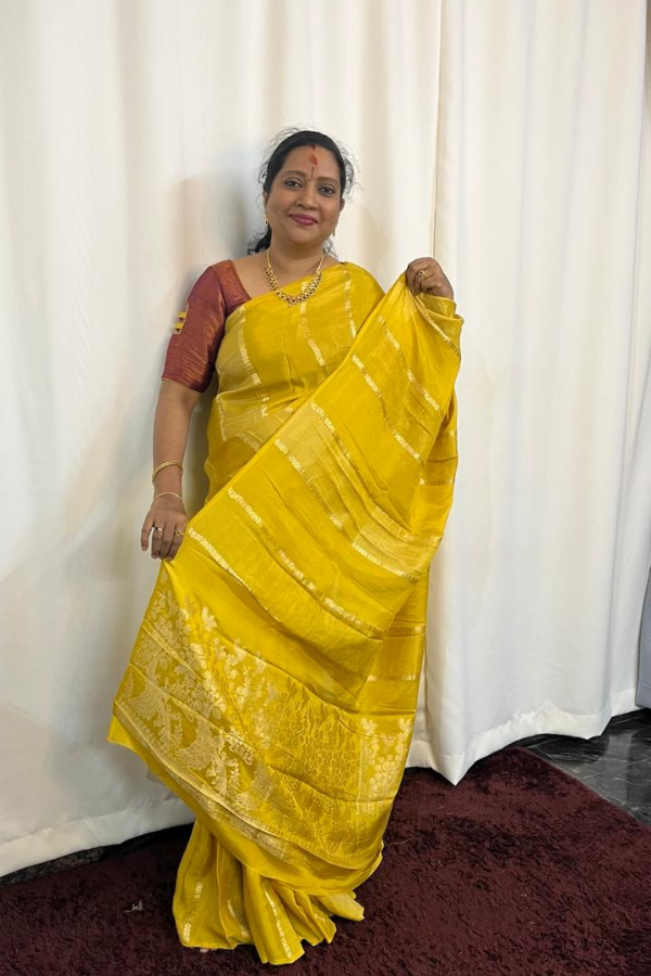 Experience the grandeur of tradition with our silk saree, a creation that echoes heritage and artistry. Crafted from finest-grade silk, this saree glows with rich texture and timeless allure. The golden zari detailing dances across the drape, creating a regal harmony of elegance and sophistication. Light yet opulent, this saree is perfect for wedding festivities, pujas, or grand celebrations. The shimmering zari motifs and rich silk texture bring an air of royalty that never fades.