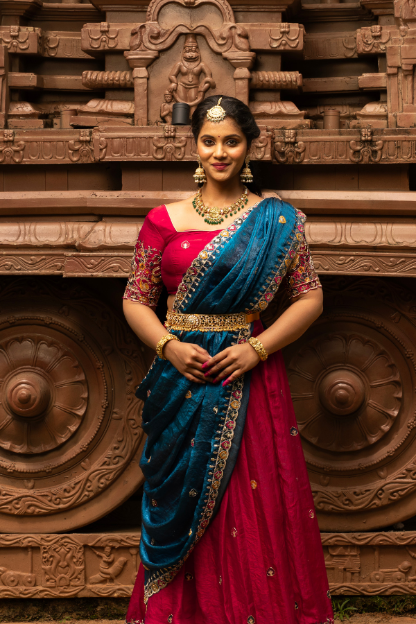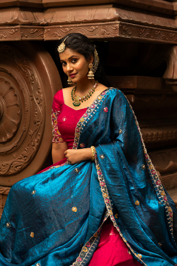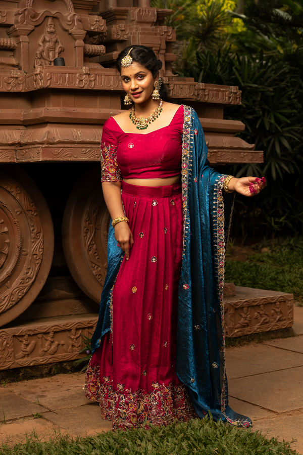 Be the first to review “Blue and Red Designer Lehenga with Handcrafted Sequence Work”