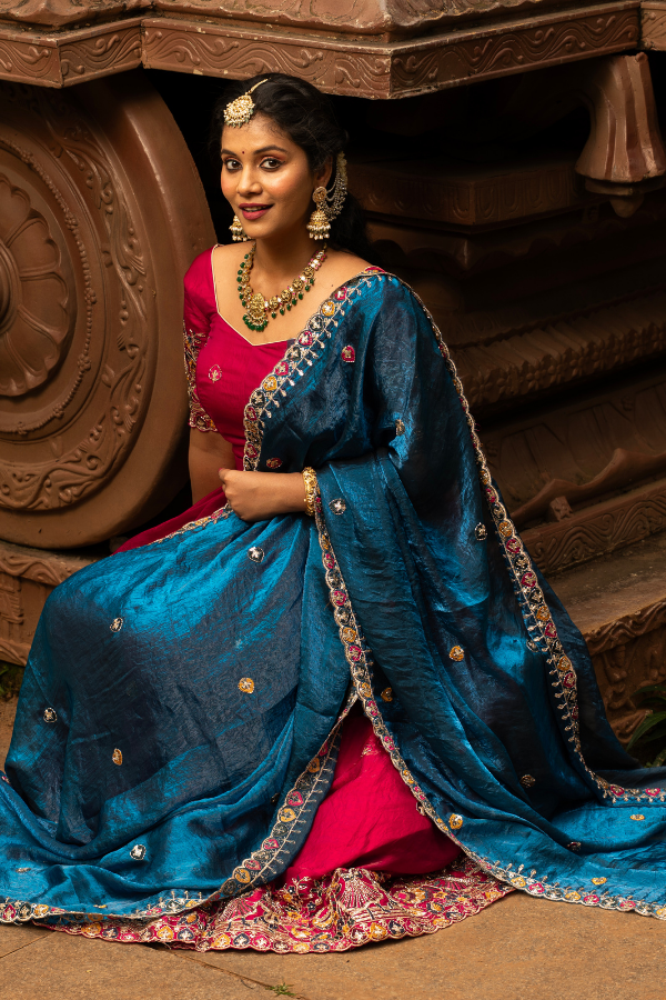 Blue and Red Designer Lehenga with Handcrafted Sequence Work