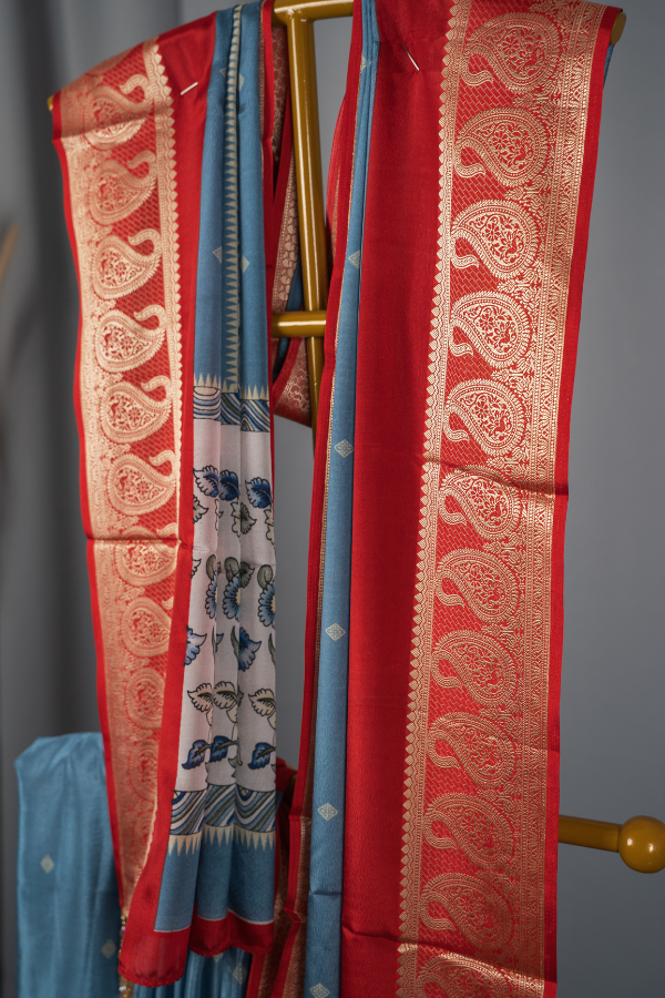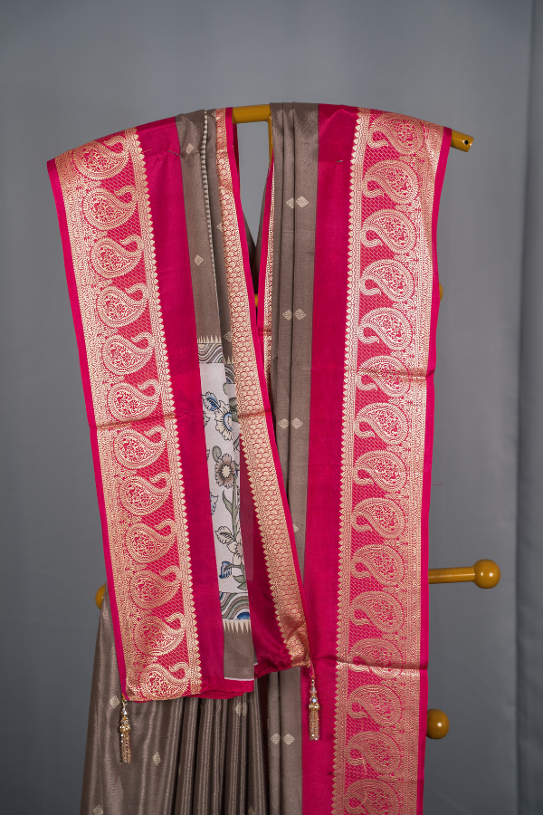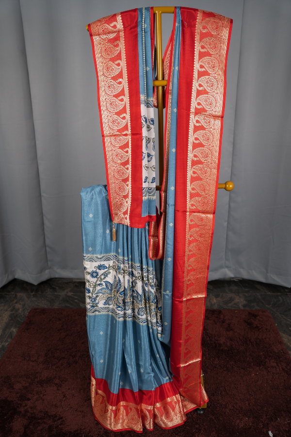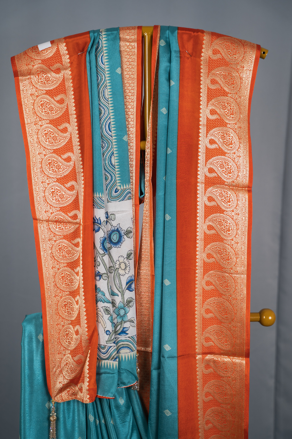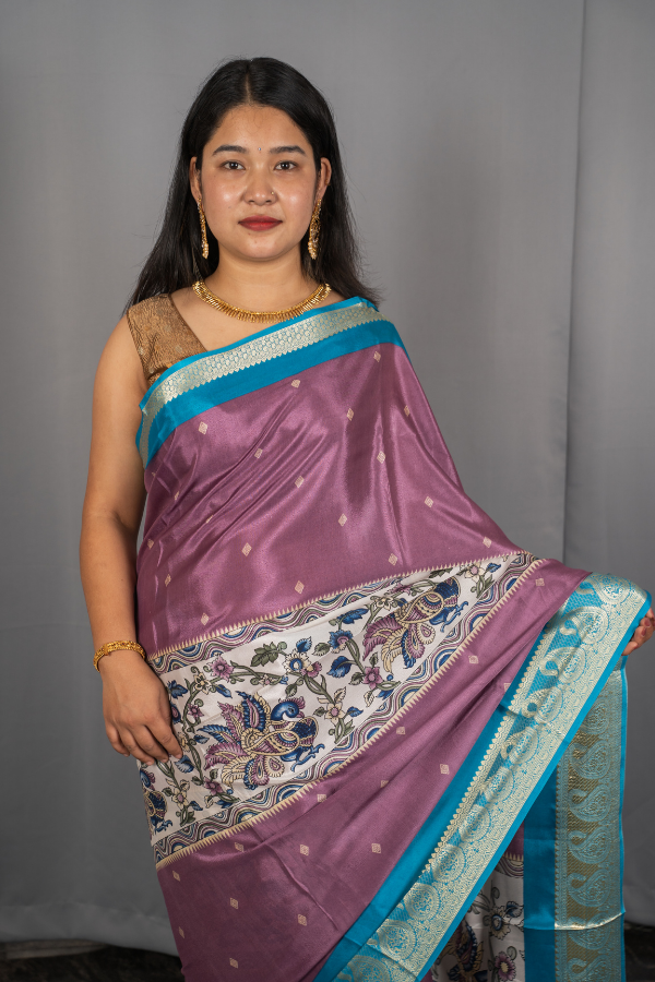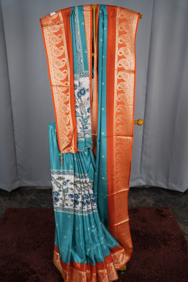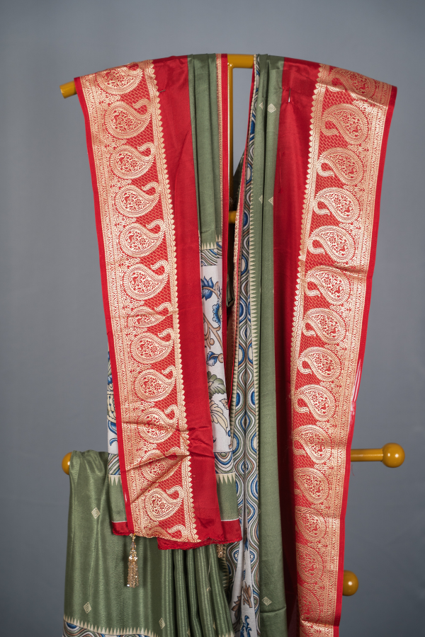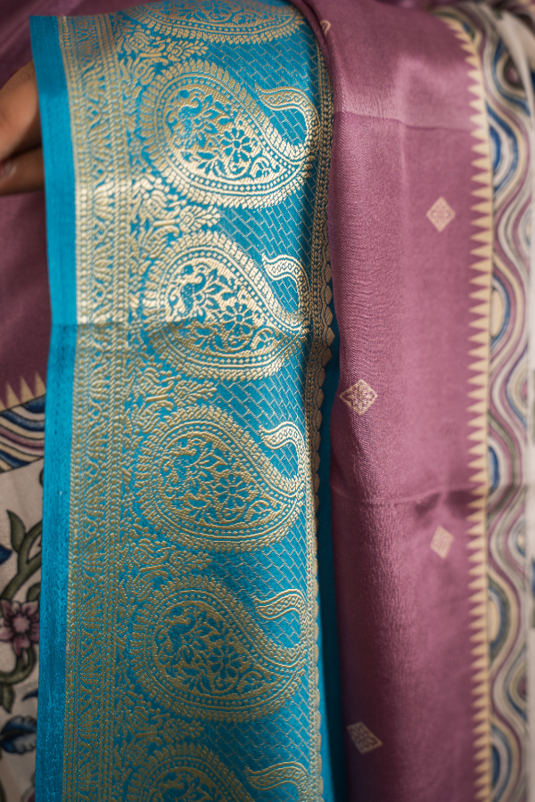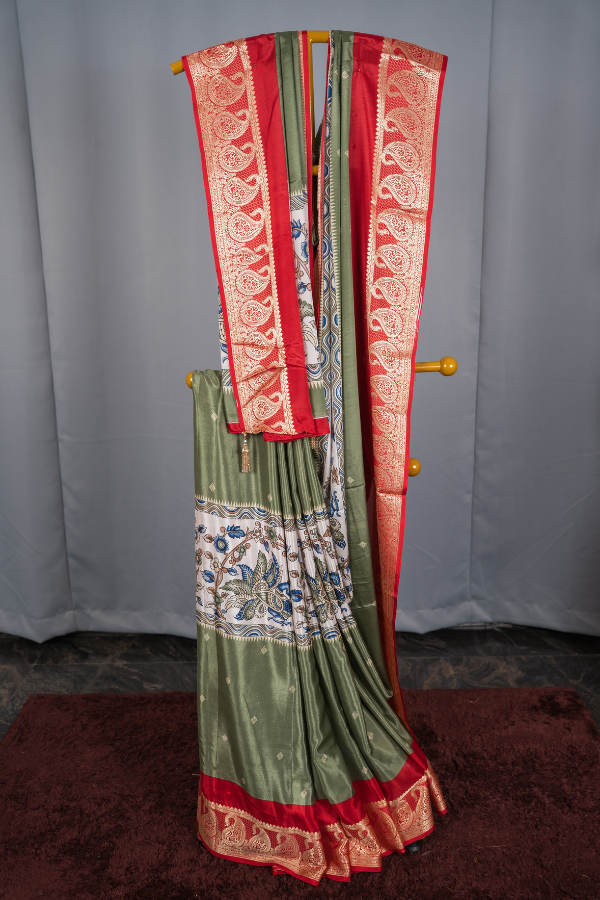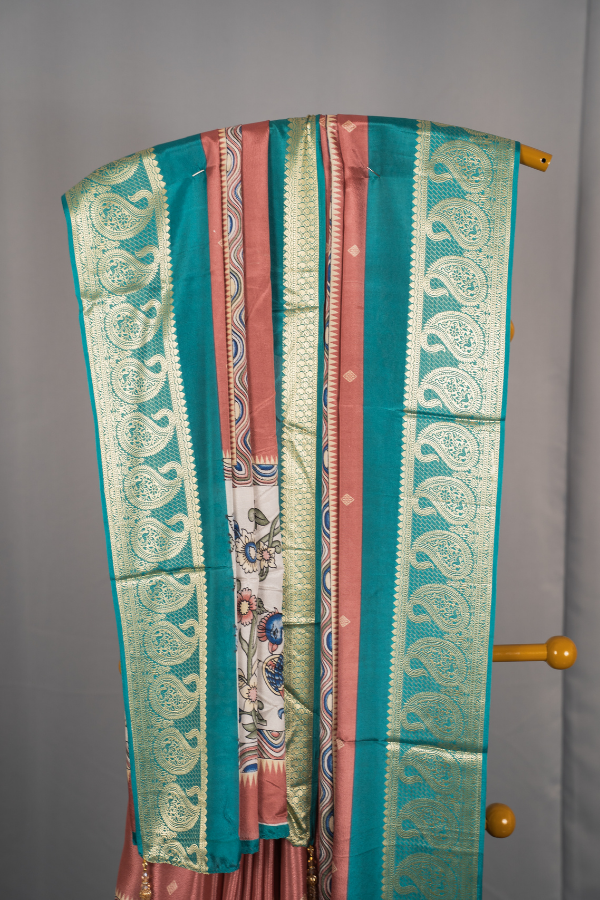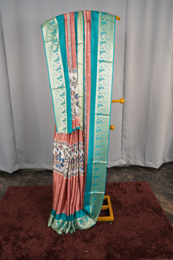 Crape Silk Material With Mango Border And Kalamkari Print
