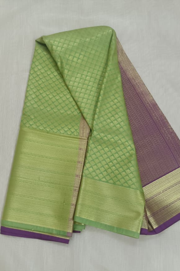 Experience the grandeur of tradition with our Kanchipuram silk saree, a creation that echoes heritage and artistry. Crafted from finest-grade silk, this saree glows with rich texture and timeless allure. The golden zari detailing dances across the drape, creating a regal harmony of elegance and sophistication. Light yet opulent, this saree is perfect for wedding festivities, pujas, or grand celebrations. The shimmering zari motifs and rich silk texture bring an air of royalty that never fades.