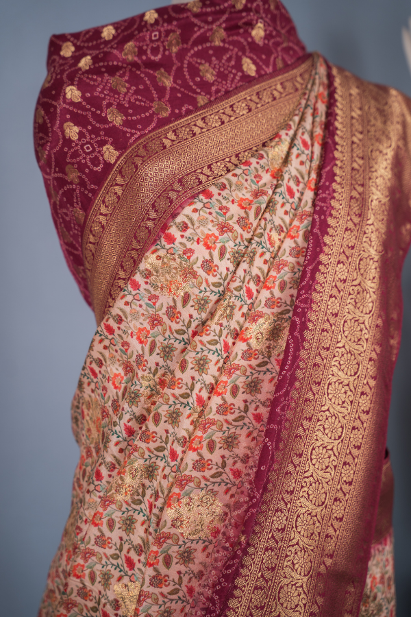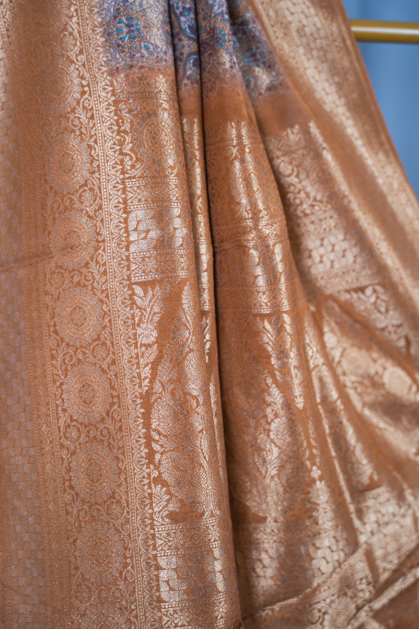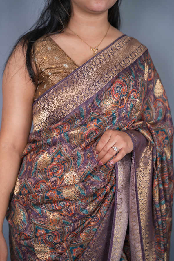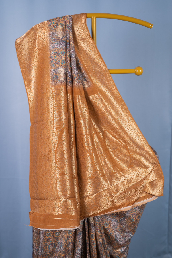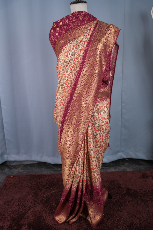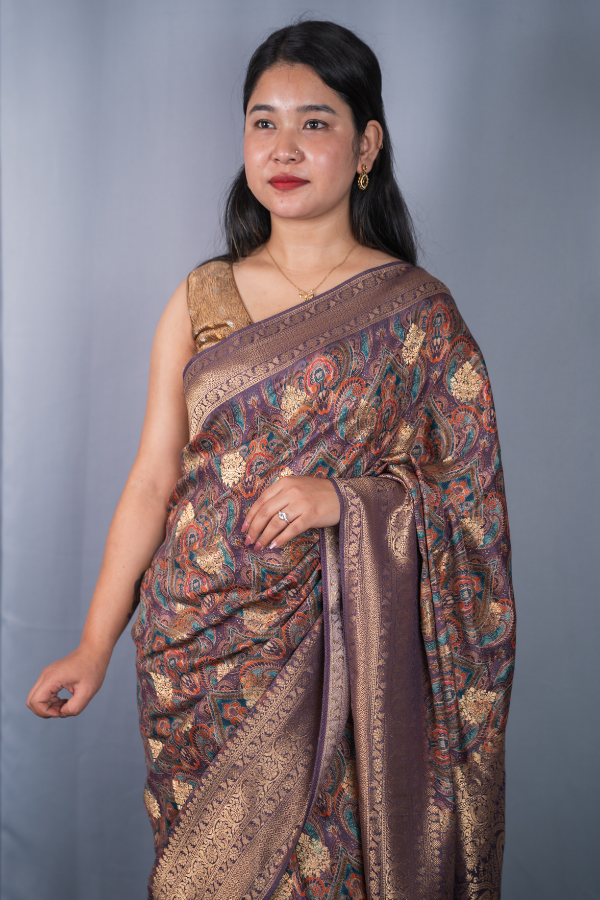 Experience the grandeur of tradition with our silk saree, a creation that echoes heritage and artistry. Crafted from finest-grade silk, this saree glows with rich texture and timeless allure. The golden zari detailing dances across the drape, creating a regal harmony of elegance and sophistication. Light yet opulent, this saree is perfect for wedding festivities, pujas, or grand celebrations. The shimmering zari motifs and rich silk texture bring an air of royalty that never fades.