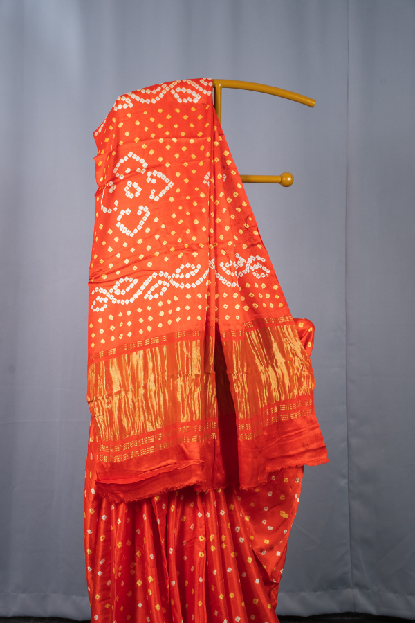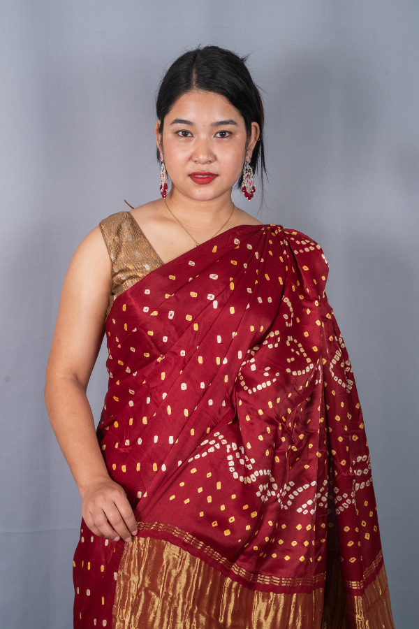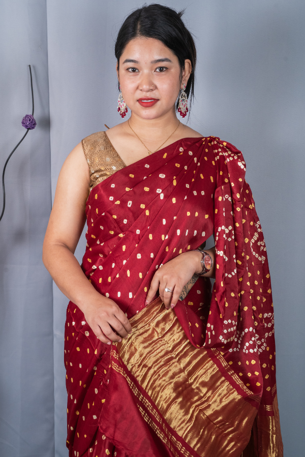 Experience the grandeur of tradition with our silk saree, a creation that echoes heritage and artistry. Crafted from finest-grade silk, this saree glows with rich texture and timeless allure. The golden zari detailing dances across the drape, creating a regal harmony of elegance and sophistication. Light yet opulent, this saree is perfect for wedding festivities, pujas, or grand celebrations. The shimmering zari motifs and rich silk texture bring an air of royalty that never fades.