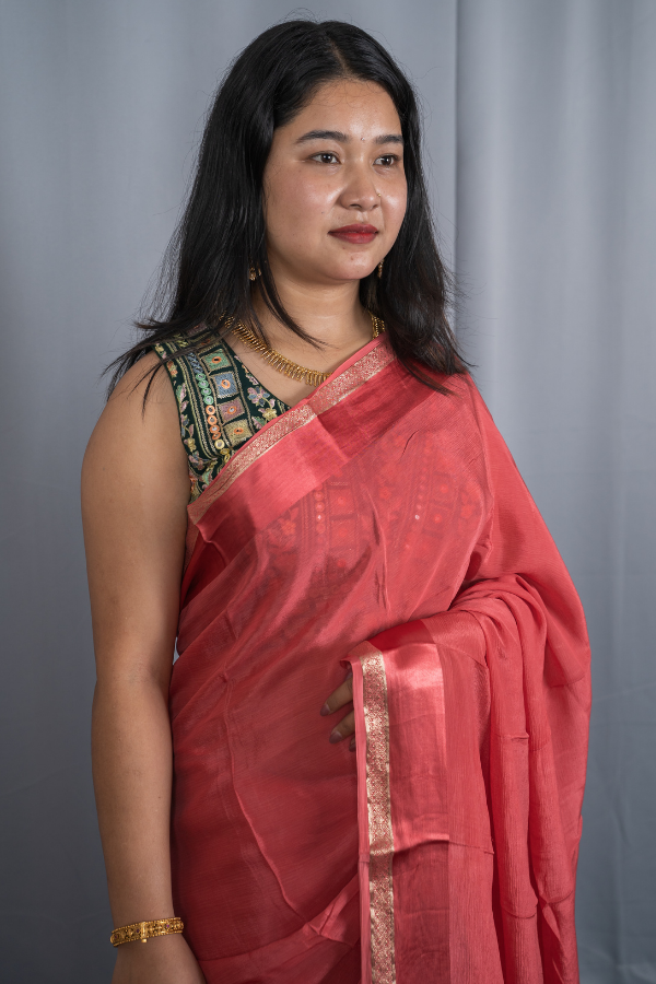Pure Chinon Silk with Contrast Blouse – Lotus