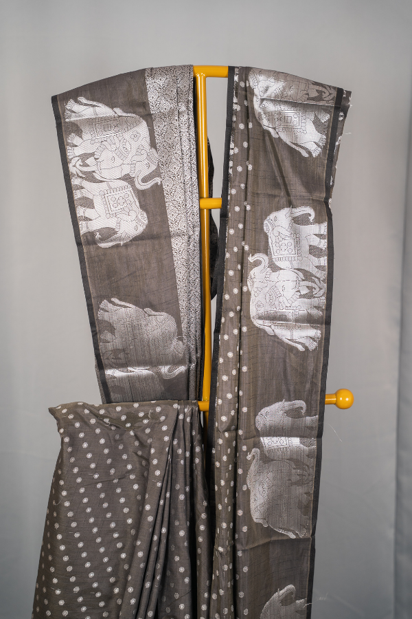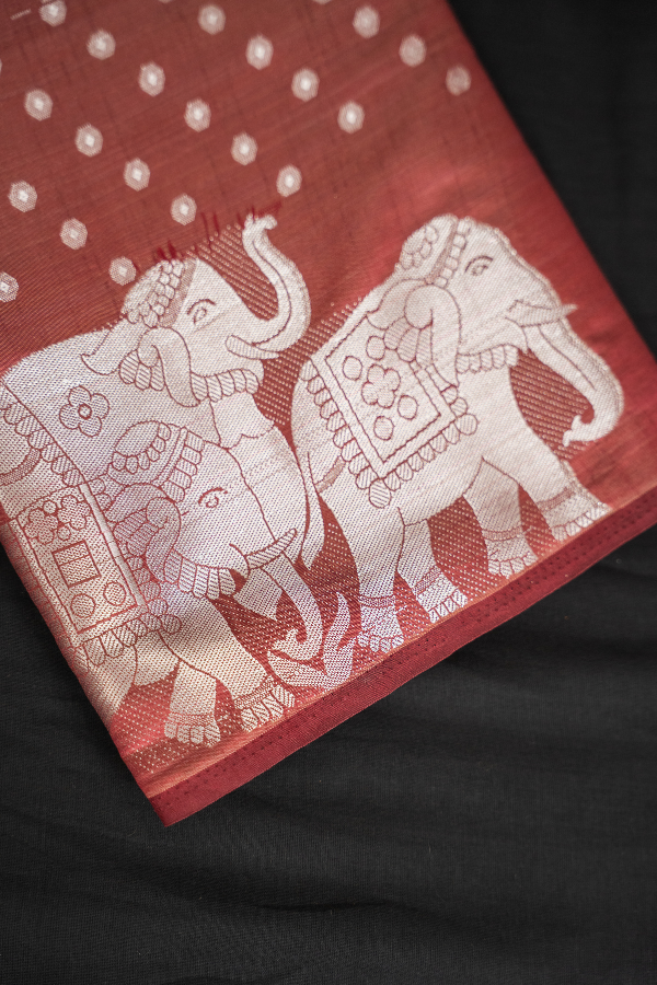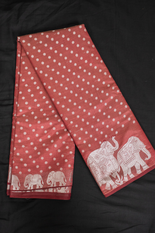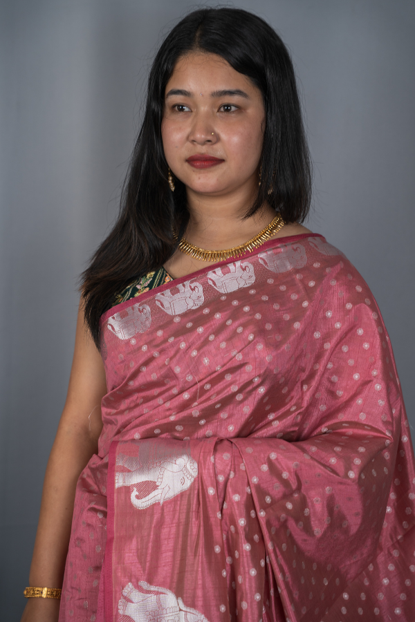 Experience the grandeur of tradition with our Raw silk saree, a creation that echoes heritage and artistry. Crafted from finest-grade silk, this saree glows with rich texture and timeless allure. The golden zari detailing dances across the drape, creating a regal harmony of elegance and sophistication. Light yet opulent, this saree is perfect for wedding festivities, pujas, or grand celebrations. The shimmering zari motifs and rich silk texture bring an air of royalty that never fades.