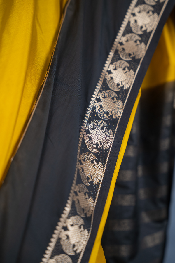 Experience the grandeur of tradition with our silk saree, a creation that echoes heritage and artistry. Crafted from finest-grade silk, this saree glows with rich texture and timeless allure. The golden zari detailing dances across the drape, creating a regal harmony of elegance and sophistication. Light yet opulent, this saree is perfect for wedding festivities, pujas, or grand celebrations. The shimmering zari motifs and rich silk texture bring an air of royalty that never fades.