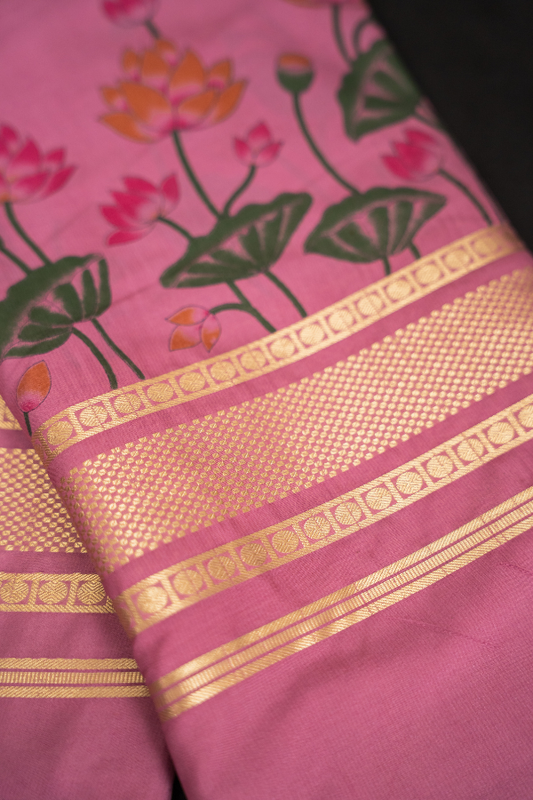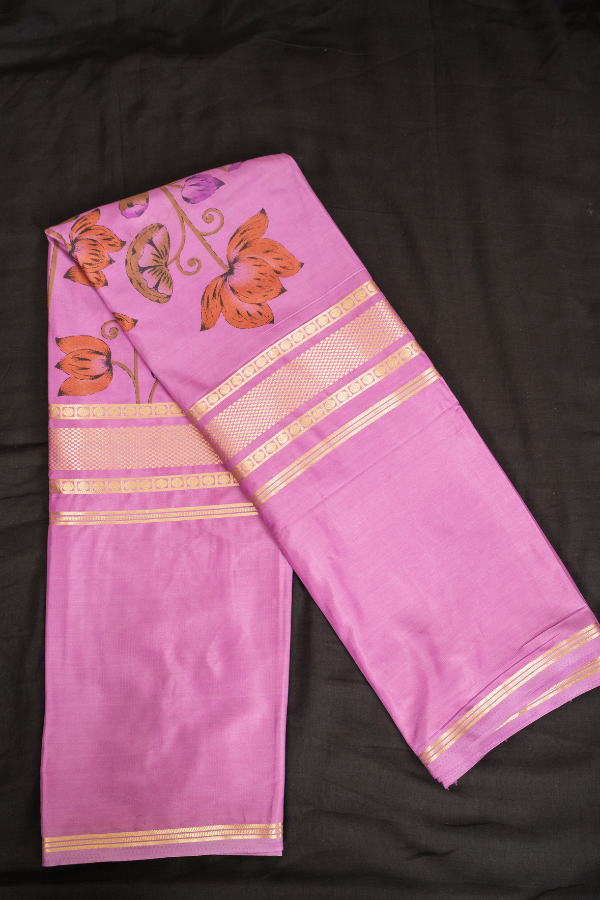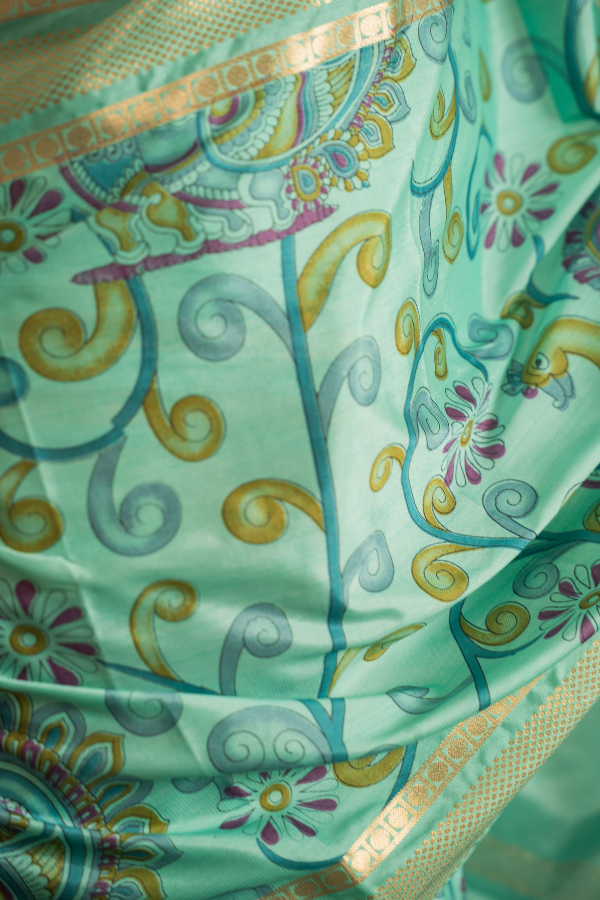 Semi Mysore Silk Crape Kalmkari Digital Print With Small Tissue Border