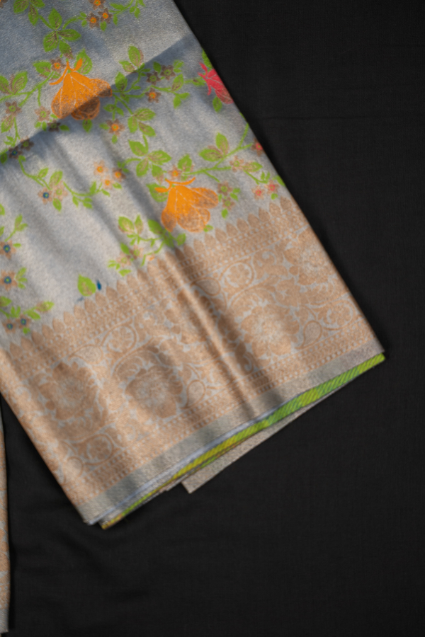 Experience the grandeur of tradition with our tissue saree, a creation that echoes heritage and artistry. Crafted from finest-grade silk, this saree glows with rich texture and timeless allure. The golden zari detailing dances across the drape, creating a regal harmony of elegance and sophistication. Light yet opulent, this saree is perfect for wedding festivities, pujas, or grand celebrations. The shimmering zari motifs and rich silk texture bring an air of royalty that never fades.