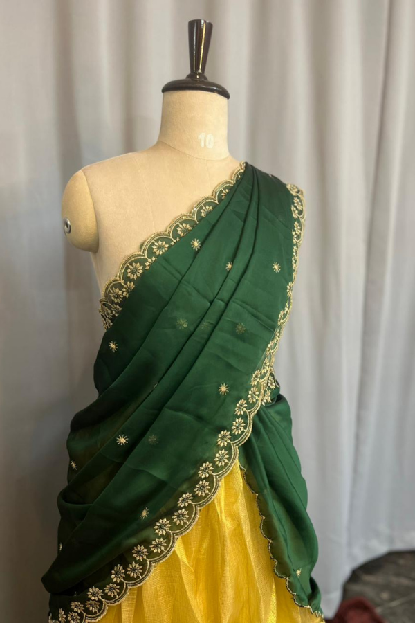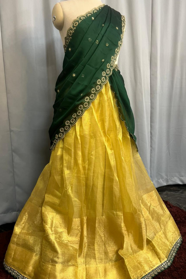 Tissue Golden Jari Lehenga With Contrast Dupatta